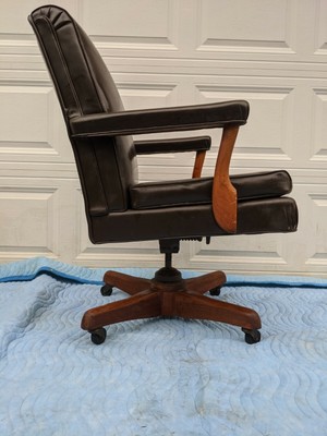 Reserved Mcm Sculpted Walnut Teak Rolling Executive Chair Stanley Manuf Co Bassick Casters Danish Modern Style Swivel Office Chair Executive Chair Swivel Office Chair Teak Frame